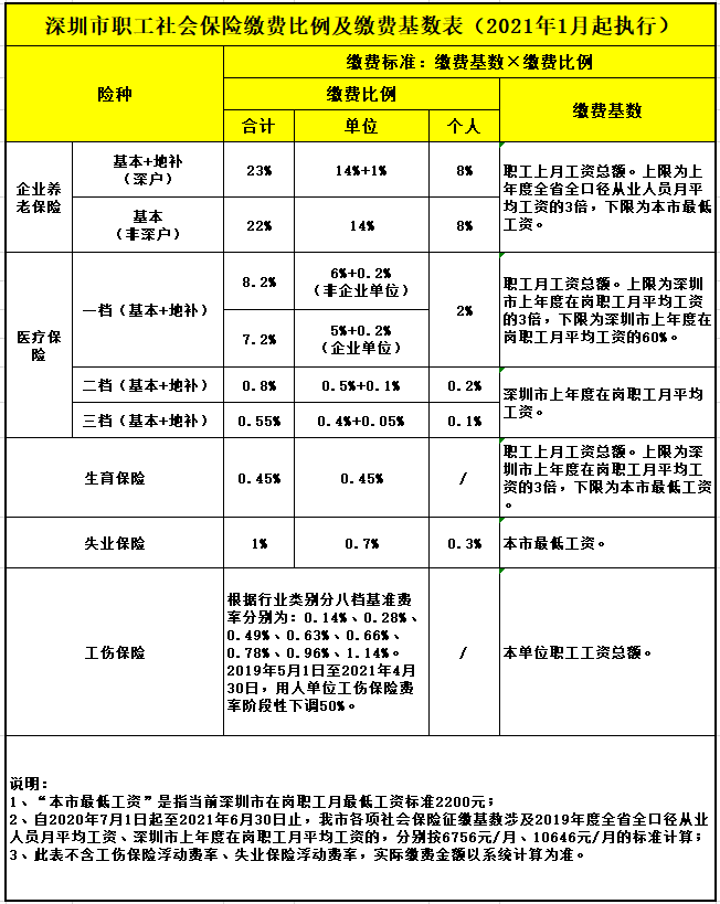 以下(xià)是(shì)深圳市(shì)職工(gōng)社會(huì)保險繳費(fèi)比例及繳費(fèi)基數(shù)✔↓表(2021年(nián)1月(yuè)起執行(xíng)),大(dà)家(ji$≥ā)可(kě)以對(duì)比一(yī)下(xià)。
