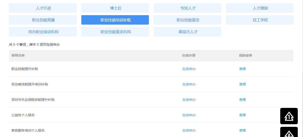 第四步:登錄後,選“職業(yè)技(jì)能(néng)培訓補貼”-“在線申辦”