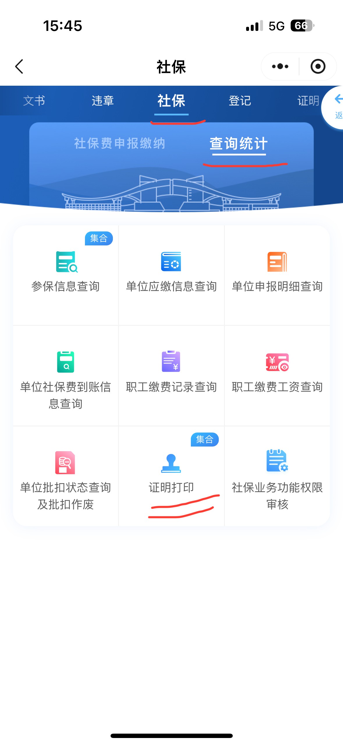 第二步找到(dào)【業(yè)務辦理(lǐ)】—【社保】—【查詢統計(jì)】